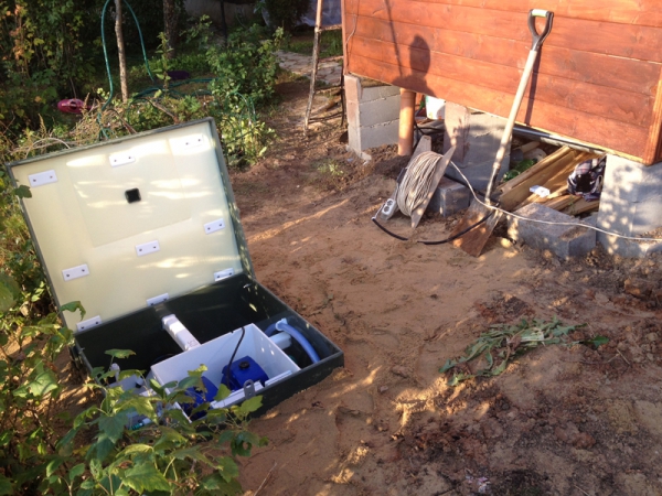 Установка имеет блок управления, а также в систему входят трубы для стоков, краны, фурнитура и кабель питания.