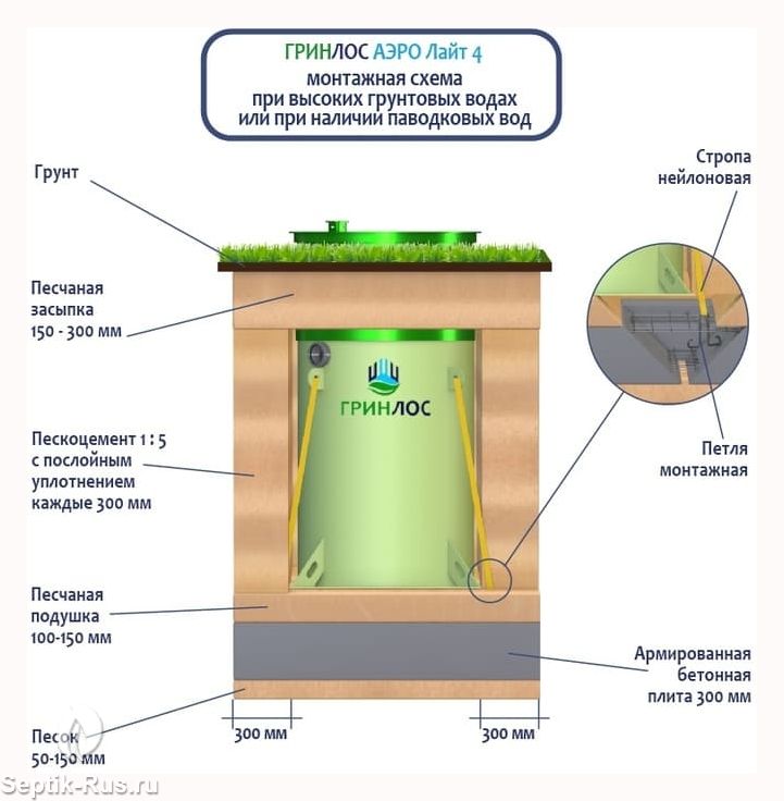 Перед непосредственным монтажом Гринлос Аэро Лайт 4 специалисты осуществляют подготовку котлована. Его размеры определяются конструктивными особенностями выбранной модели оборудования.