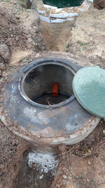 Поверх корпуса оборудования выполняется песчаная обсыпка на высоту 150-300 мм. Для подсоединения оборудования к внутренней канализационной магистрали применяют канализационные трубы, предназначенные для эксплуатации в наружной канализационной системе, обладающие диаметром 110 мм.