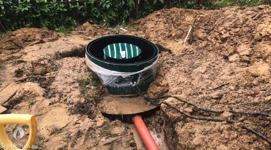 В зависимости от рельефа местности, состава грунта и условий сброса очищенной сточной воды возможны следующие варианты монтажа: